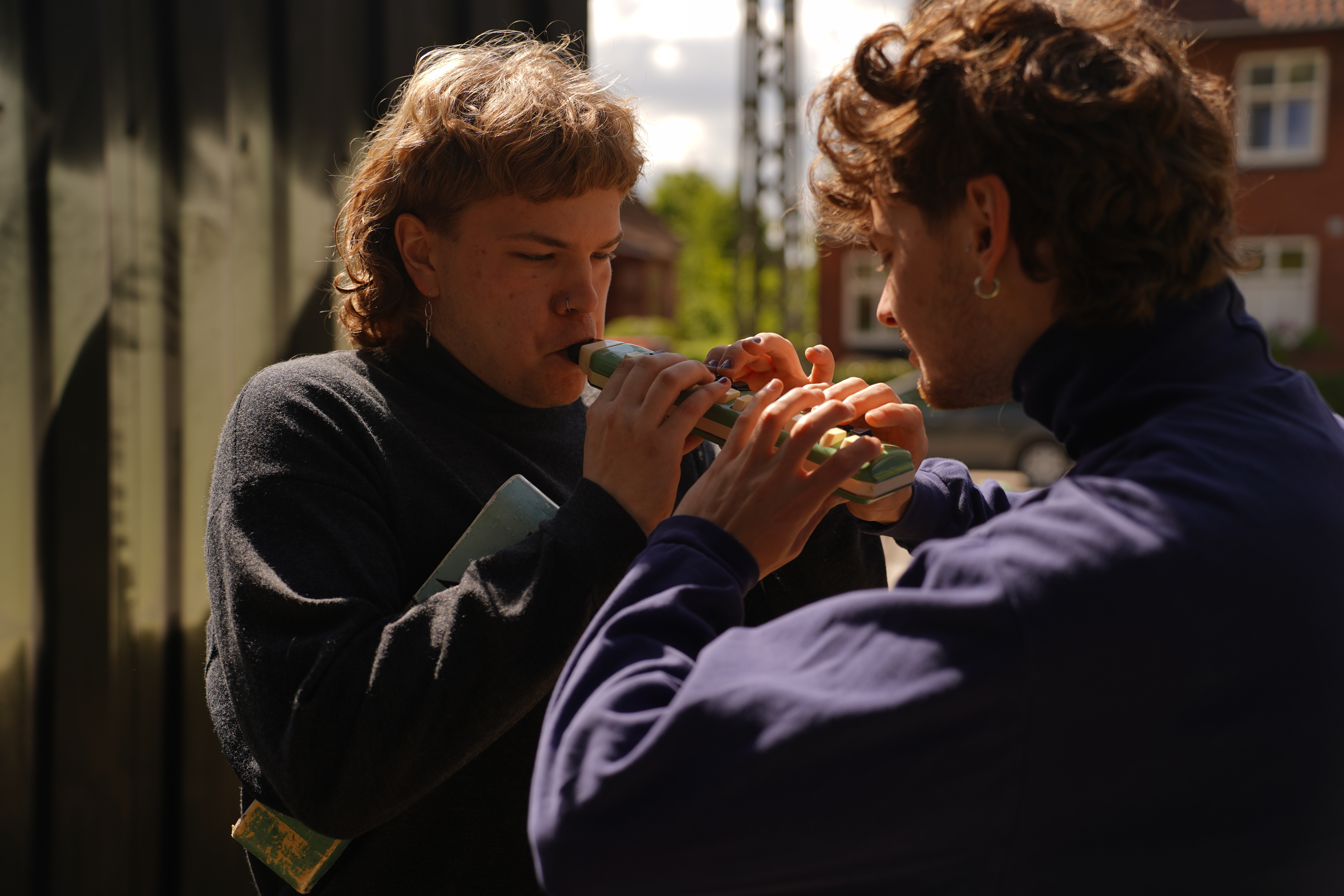 Booklero is a performer-composer duo based in Copenhagen, Denmark, composed of Ben Livneh and Jens Madsen. They create intermedial works involving performance art, music, text, movement, and pop-cultural materials.